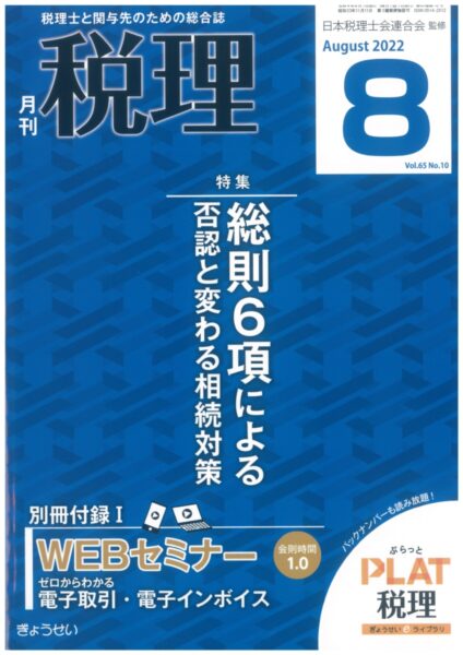 弊社代表、出岡伸和執筆の記事が「税理」2022年8月号(ぎょうせい)に掲載されました。