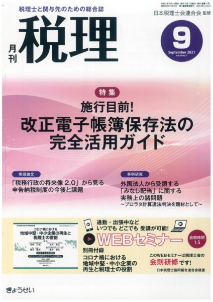 弊社代表、北川裕之執筆の記事が「税理」2021年9月号(ぎょうせい)に掲載されました。